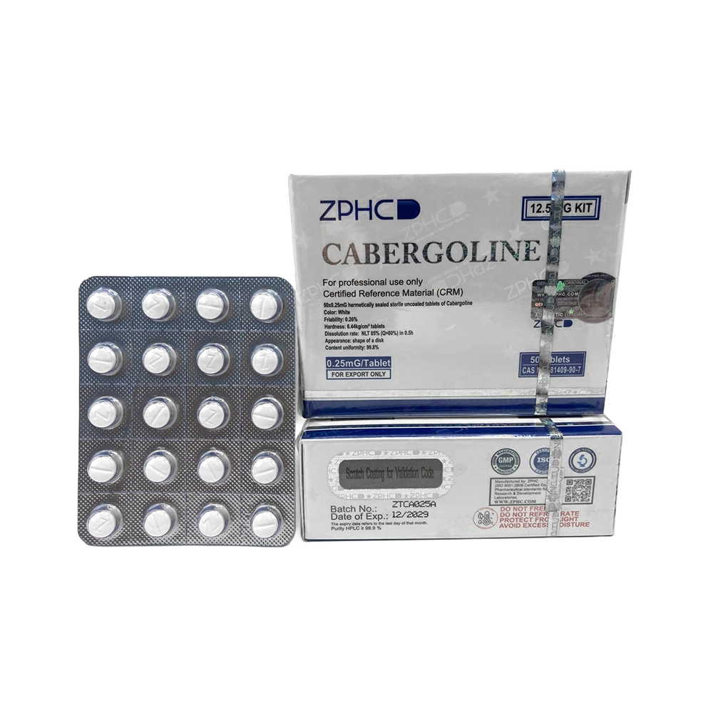 ZPHC Cabergoline is a dopamine agonist commonly used in research for regulating prolactin levels. It works by stimulating Dâ‚‚ receptors in the pituitary gland, effectively lowering serum prolactin. This makes it a valuable tool in studies involving prolactin-related side effects from anabolic compounds like Trenbolone and Nandrolone, as well as models related to libido, erectile function, and mood regulation.